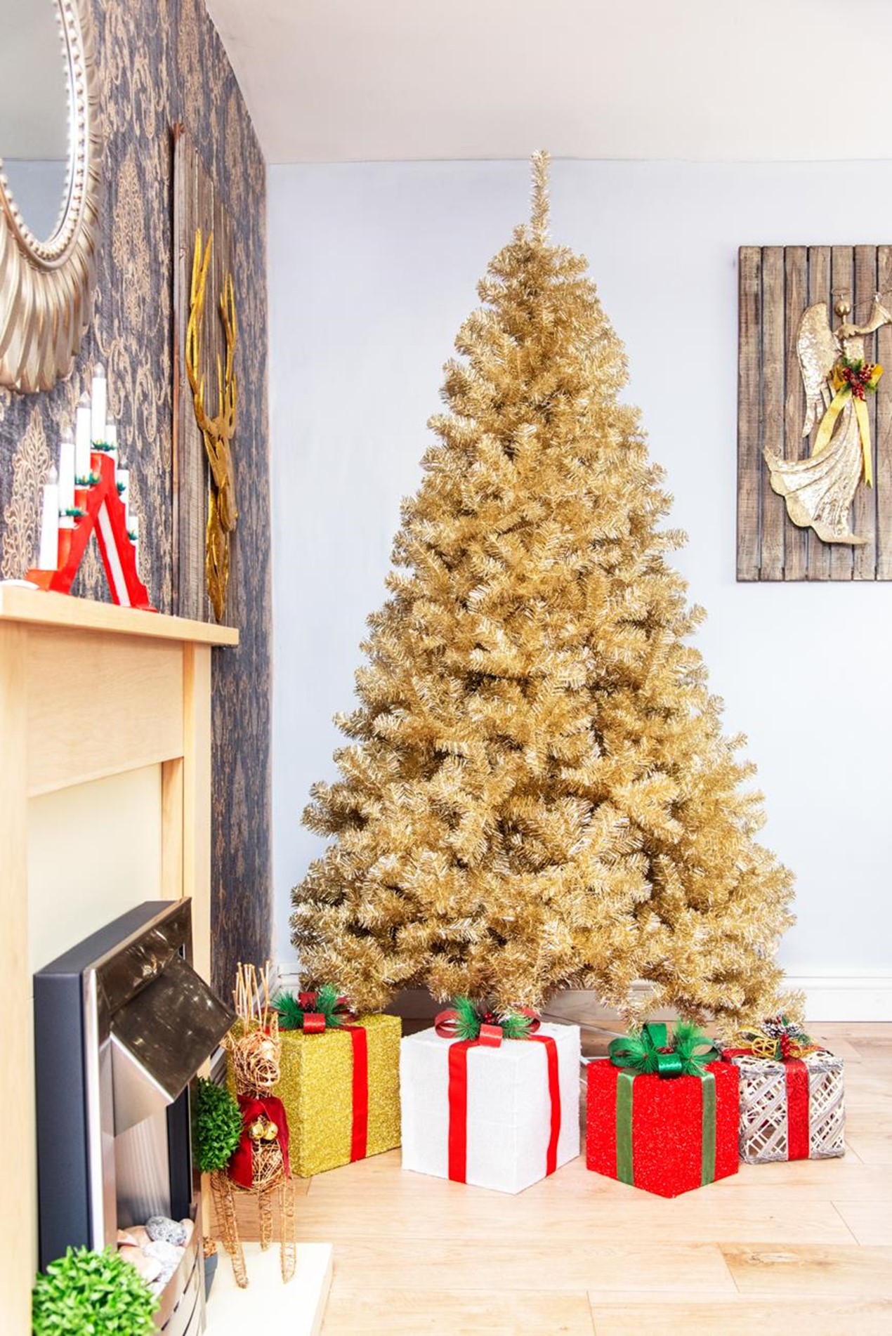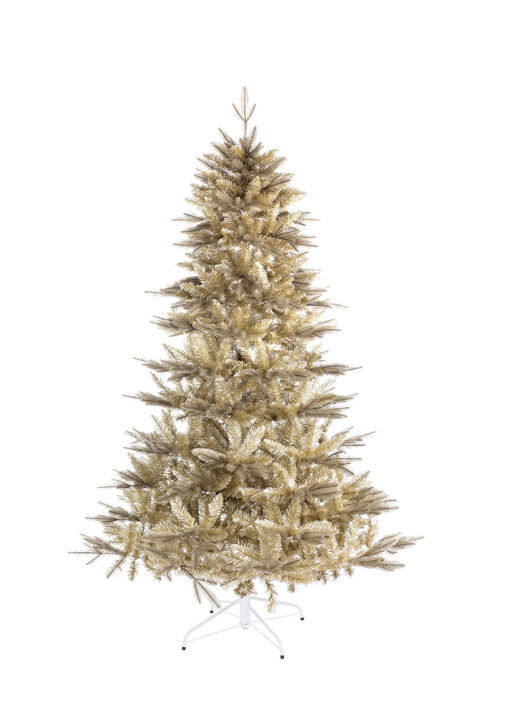 Christmas Tree with gold needles and branches in metal frame and base, to be assembled.