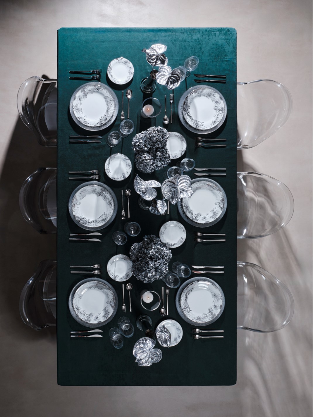 Glass charger plate with silver rim, 33cm