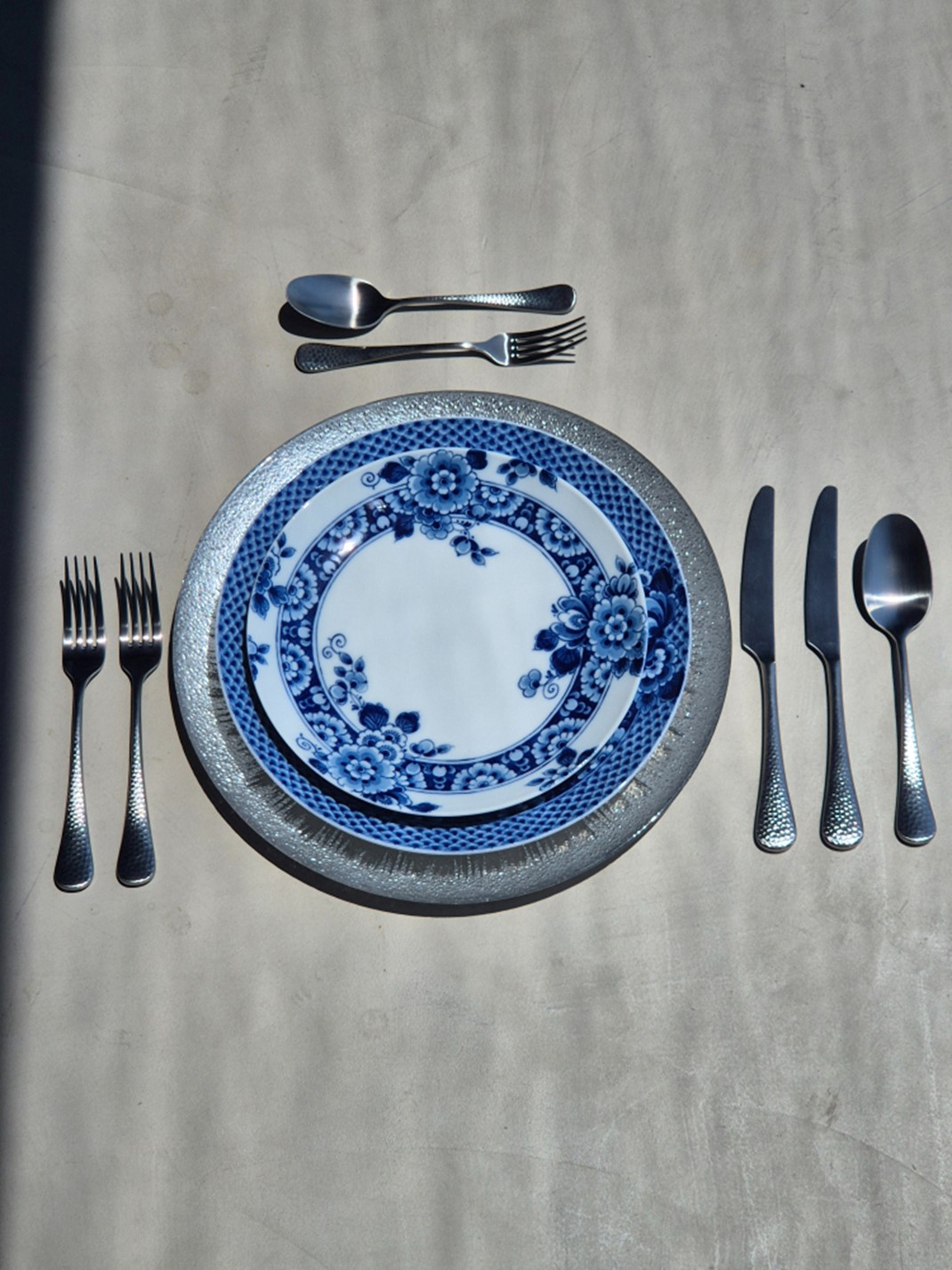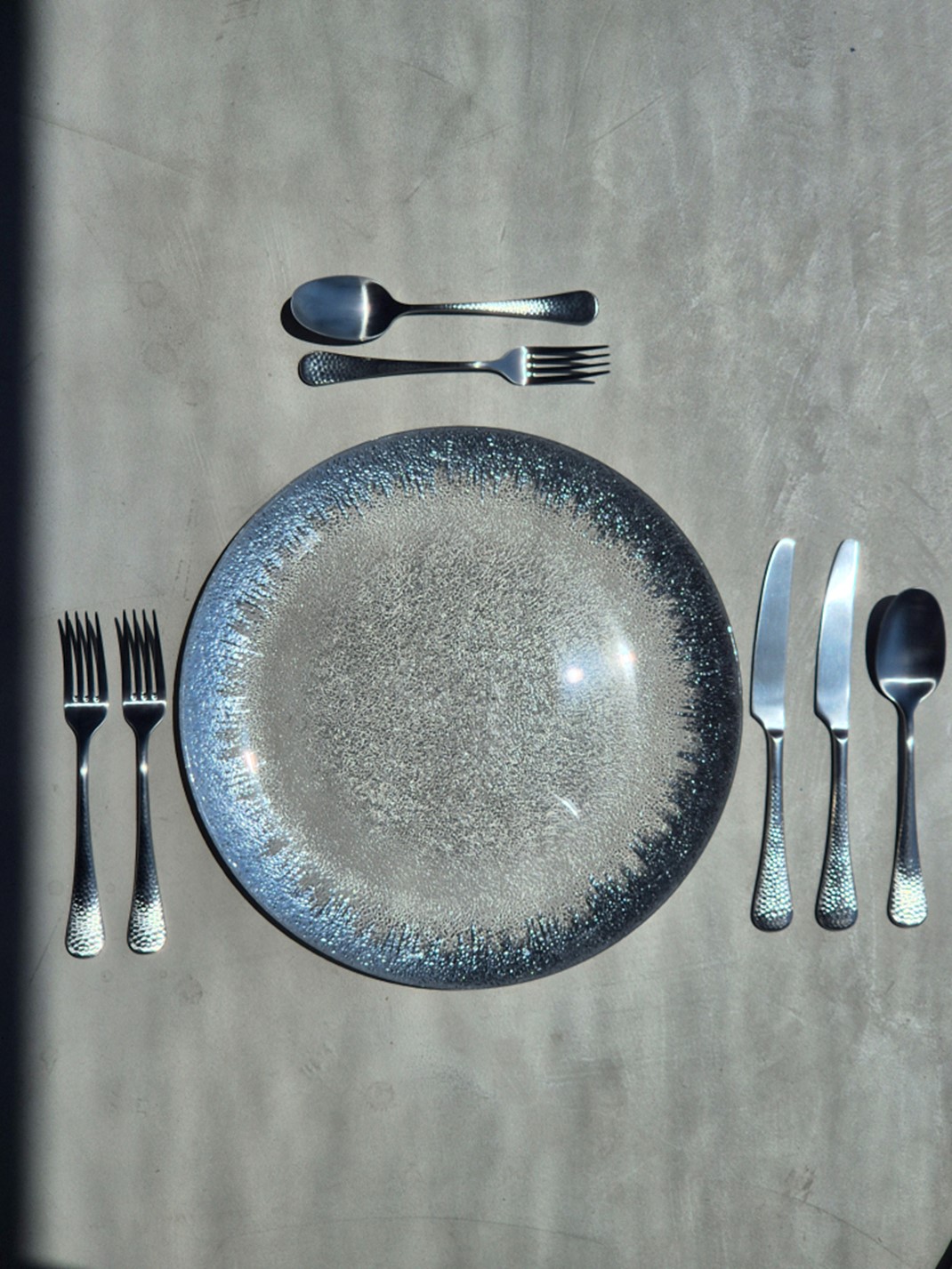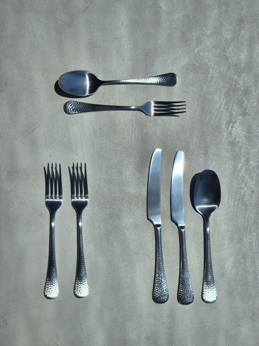 Stainless Steel Matte Metal Cutlery, Curl Handle Hammered Silverware Set